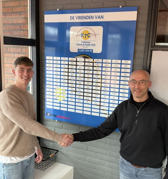 Het oude bord was dan ook aan vervanging toe om alle leden een mooi plekje te kunnen geven. Fotocadeau uit Kollum gaf aan dat zij dit bord graag wilde sponseren en daar was het bestuur van de vriendenclub dan ook erg blij mee. Onlangs overhandigde Richard Holwerda van Fotocadeau het nieuwe bord dan ook aan Douwe Bijlsma van de vrienden van de KTC. Dus mocht je de KTC een warm hart toedragen er zijn nog maar een paar plekjes vrij op het nieuwe bord. Scan de qr-code op het bord of wordt lid via de site van de KTC.