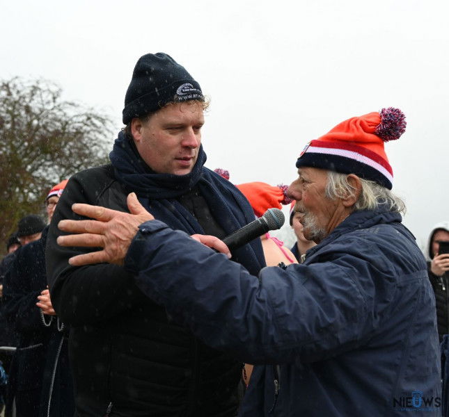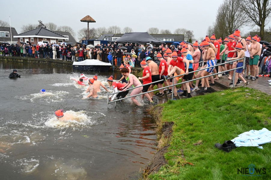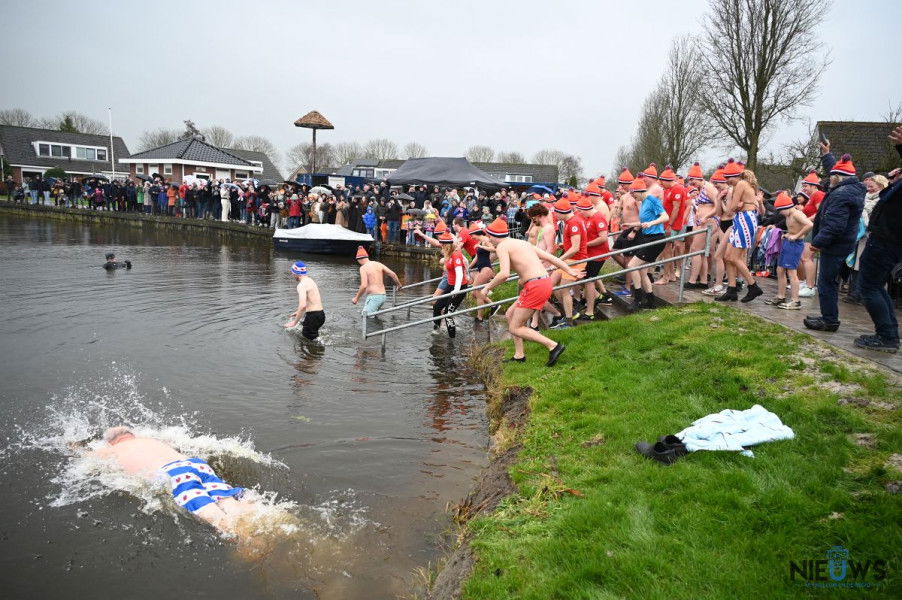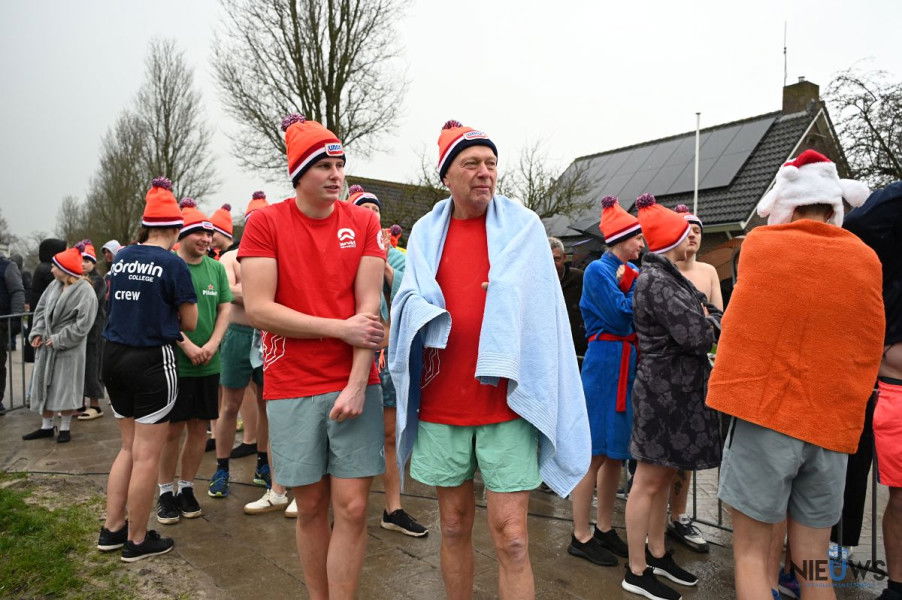 BURUM – Terwijl de nieuwjaarsduik op meerdere locaties werd afgelast vanwege harde wind en koude omstandigheden, ging het evenement in Burum op nieuwjaarsdag wel door. In de haven De Dwinger namen 54 deelnemers deel aan de 28ste editie van de nieuwjaarsduik. De weersomstandigheden waren dit jaar guur, met lage temperaturen, regen en harde wind. Desondanks gingen de deelnemers traditioneel het water in. Bouke Koning heette hen vooraf welkom en wenste iedereen succes.