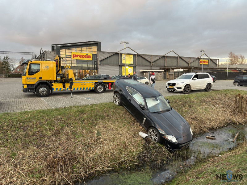 KOLLUM – Een bestuurder uit Kollum is dinsdagmiddag met zijn auto bijna in een sloot beland op het parkeerterrein bij de Praxis in Kollum.