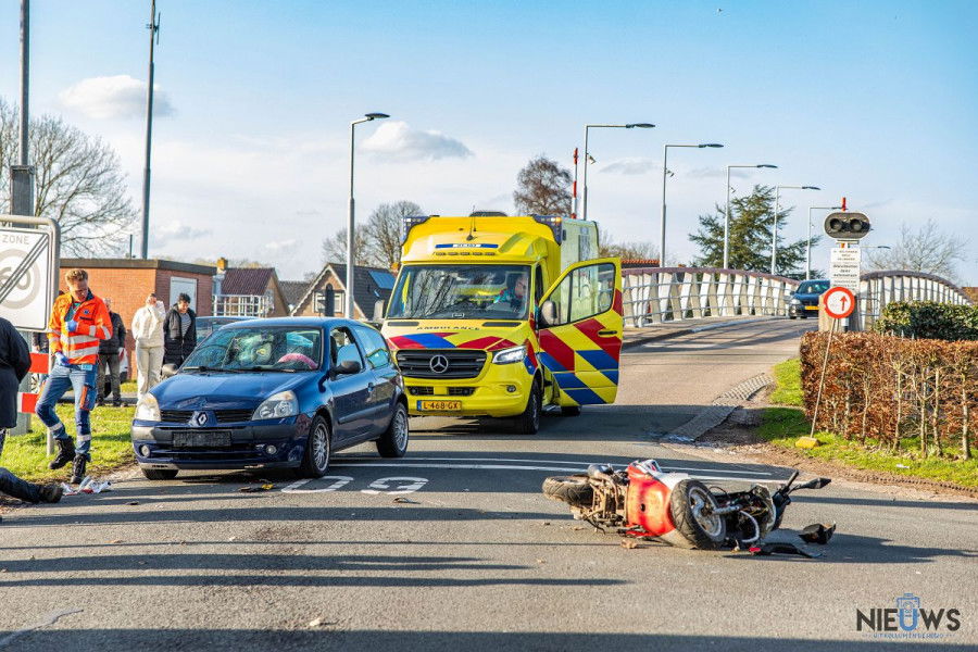 De auto kon na het ongeval nog wel doorrijden. De scooter raakte flink beschadigd en is overgebracht naar een woning.