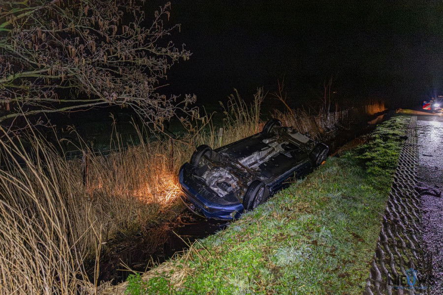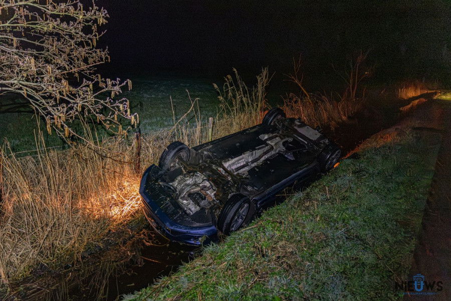 DE TRIEME – Een automobilist is in de nacht van donderdag op vrijdag met zijn auto op de kop in een sloot beland langs De Dolle bij De Trieme. Hoe het ongeval kon gebeuren, is niet bekend.