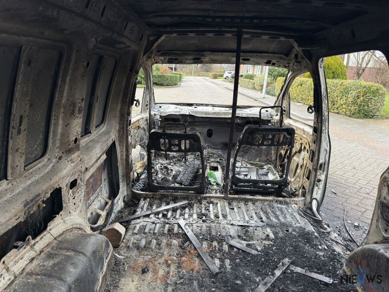 De brandweer werd niet opgeroepen om de brand te blussen. De bestelbus is compleet verwoest door de brand.