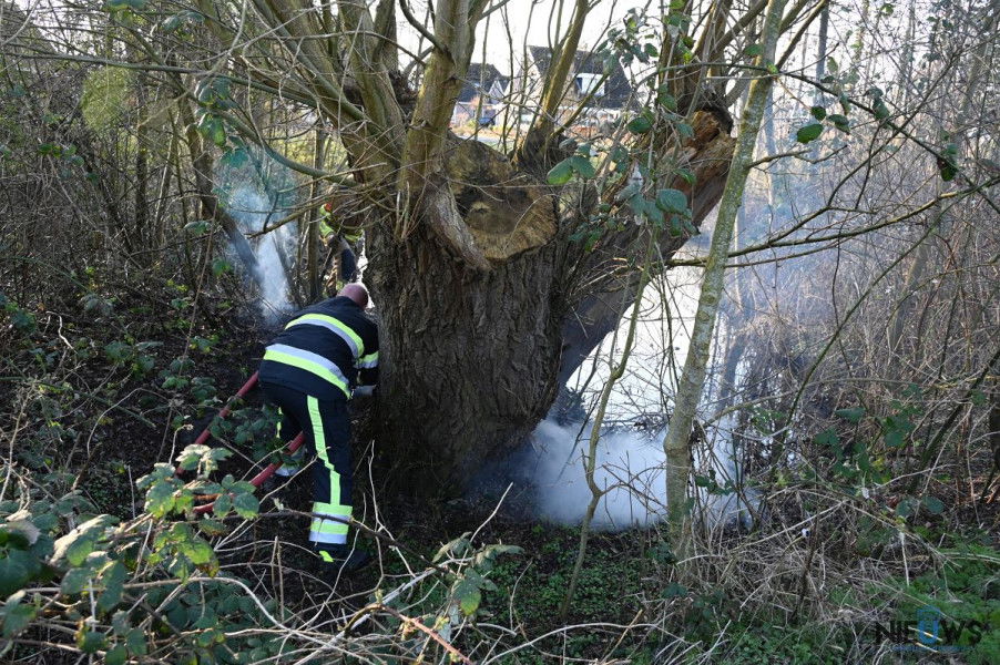 Een wandelaar zag rook uit de struiken komen en alarmeerde daarop de brandweer. Toen de brandweer ter plaatse kwam, bleek het nog een lastige klus om bij de brand te komen. De brand woedde namelijk onderin een boomstronk en was daardoor moeilijk bereikbaar om te blussen.