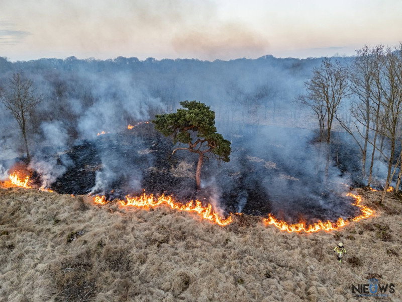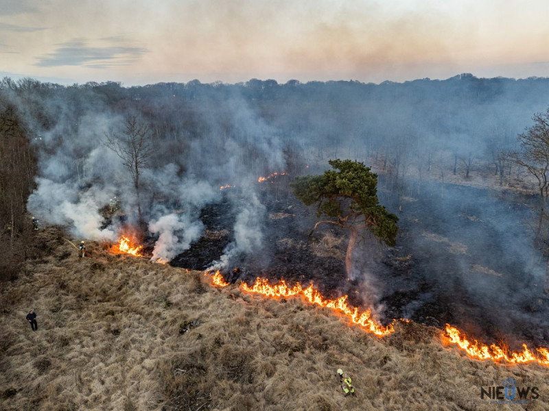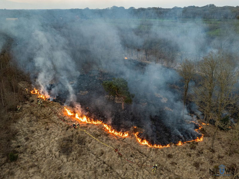 De brandweer van Burgum kwam ter plaatse om extra water te brengen. Het ging om een uitslaande brand in gedroogd gras en/of heide, waarbij een vrij groot stuk terrein in vlammen opging.