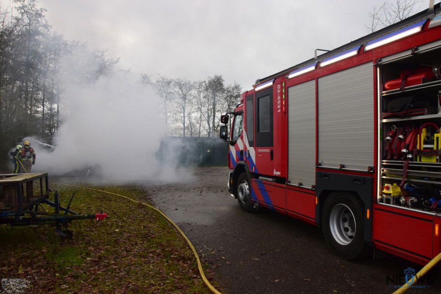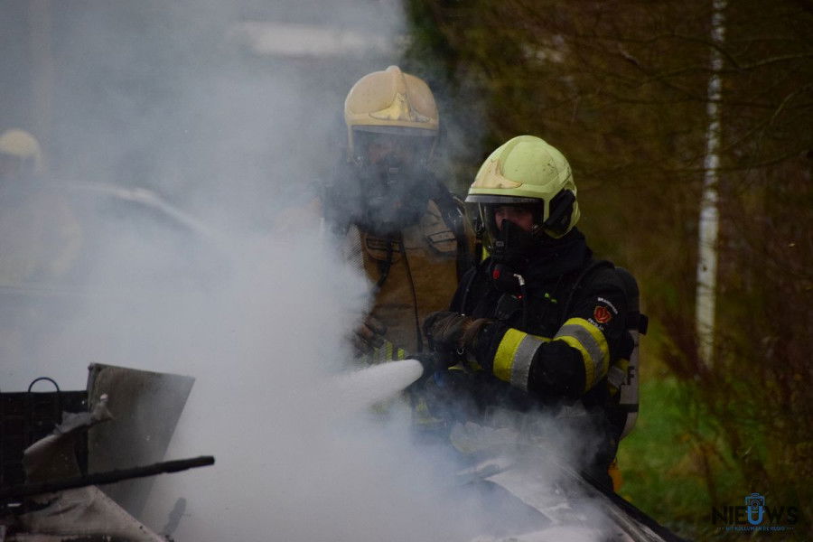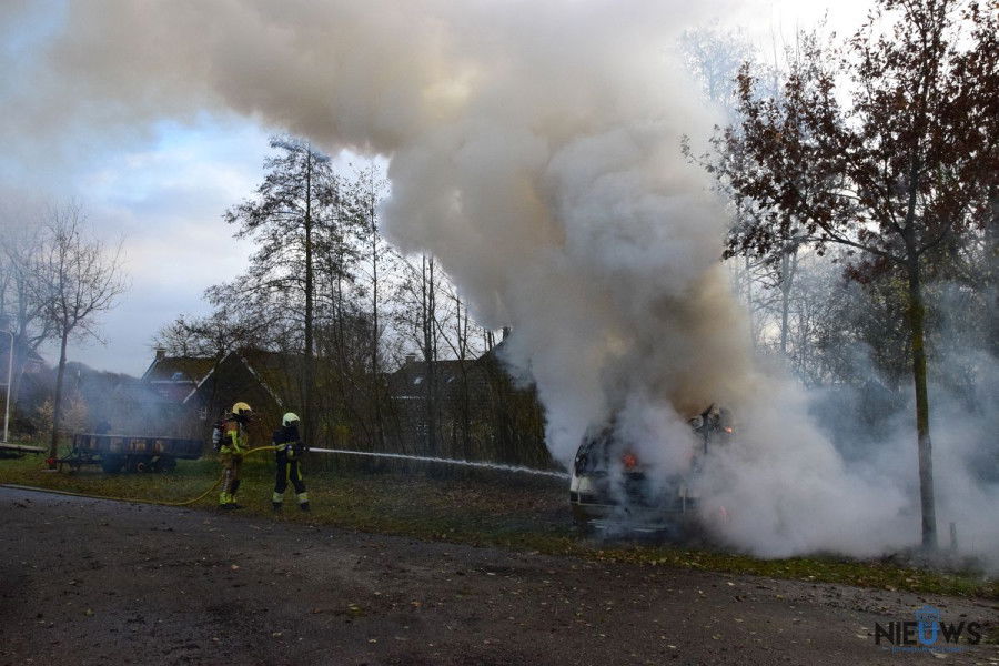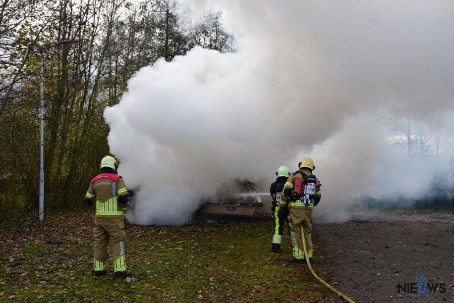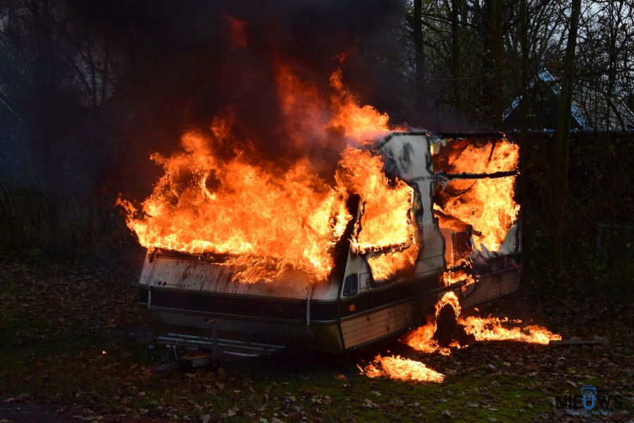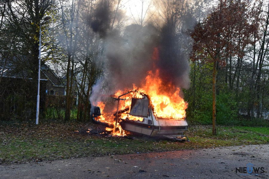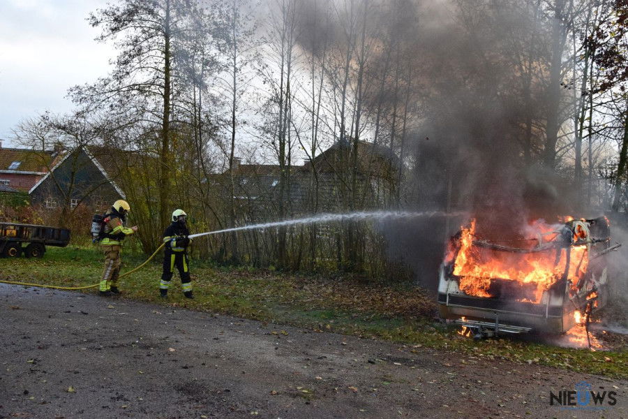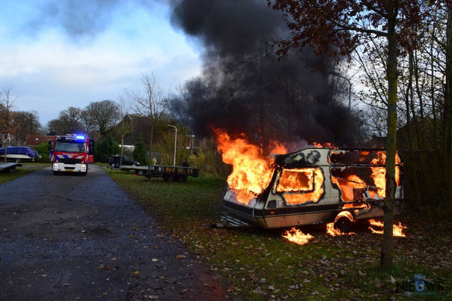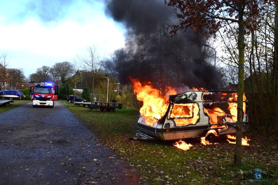 De brandweerlieden zijn gelijk begonnen met het bestrijden van de brand. De caravan stond op een carpoolplek aan de Kleasterwei. De caravan is naar alle waarschijnlijkheid in brand gezet.