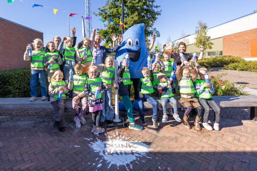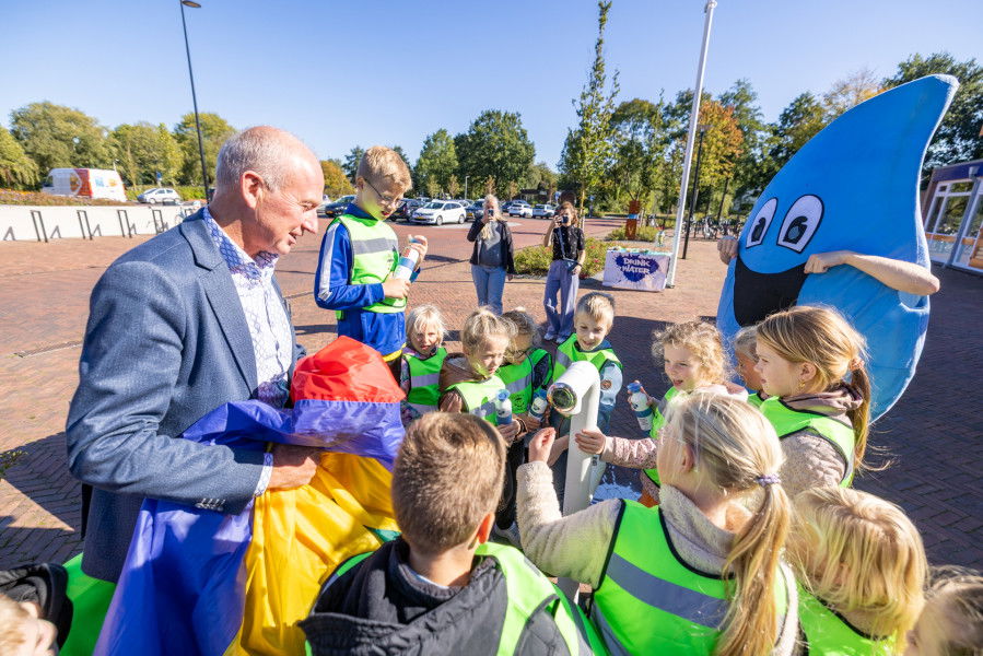 Kinderen openen drinkwaterpunt bij de Houtmoune in Buitenpost