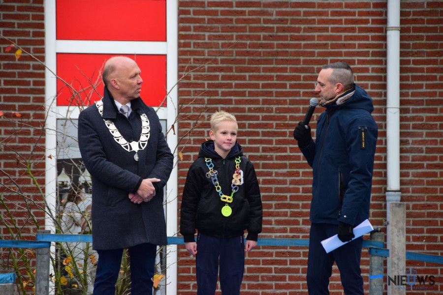 Na een welkomstwoord van Sinterklaas maakte kinderburgemeester Niek de prijswinnaars van de kleurplatenwedstrijd bekend.