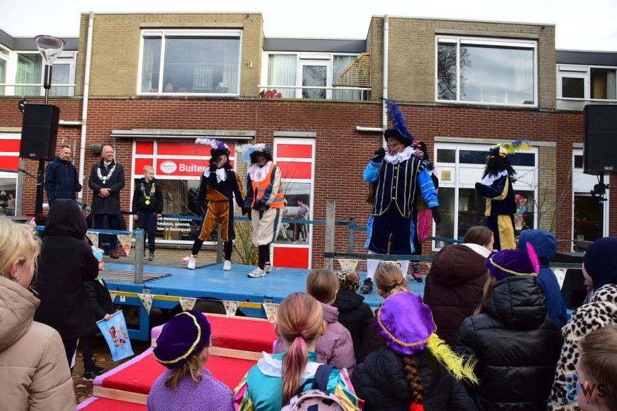 BUITENPOST – De kinderen in Buitenpost zaten zaterdagmiddag vol spanning te wachten op de komst van Sinterklaas en zijn Pieten. Waar de Sint vorig jaar nog arriveerde op het parkeerterrein bij zwembad De Kûpe, vond de intocht dit jaar plaats op het Nijensteinplein