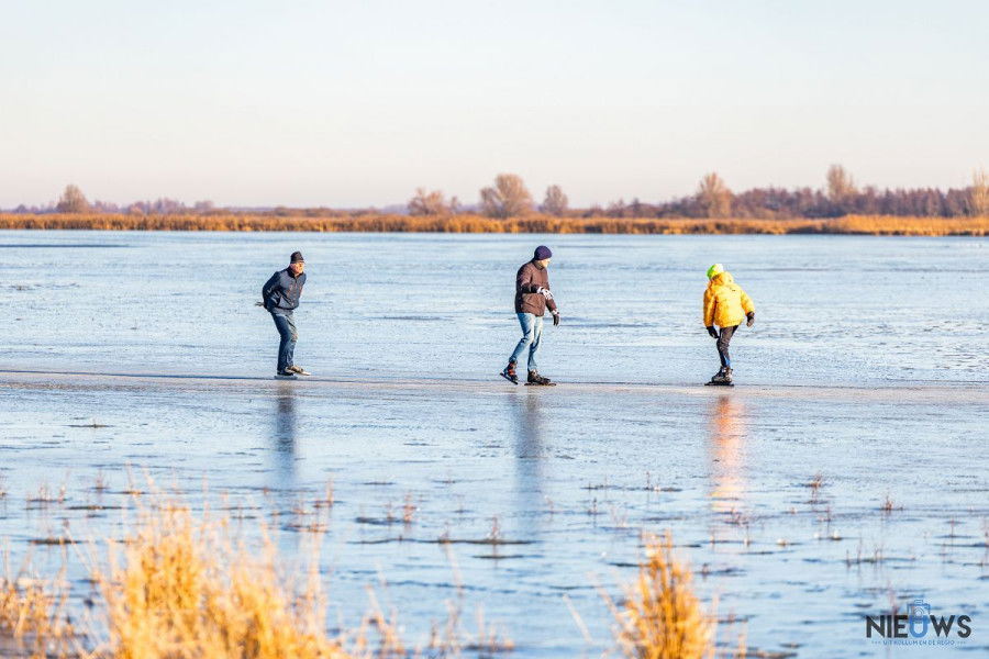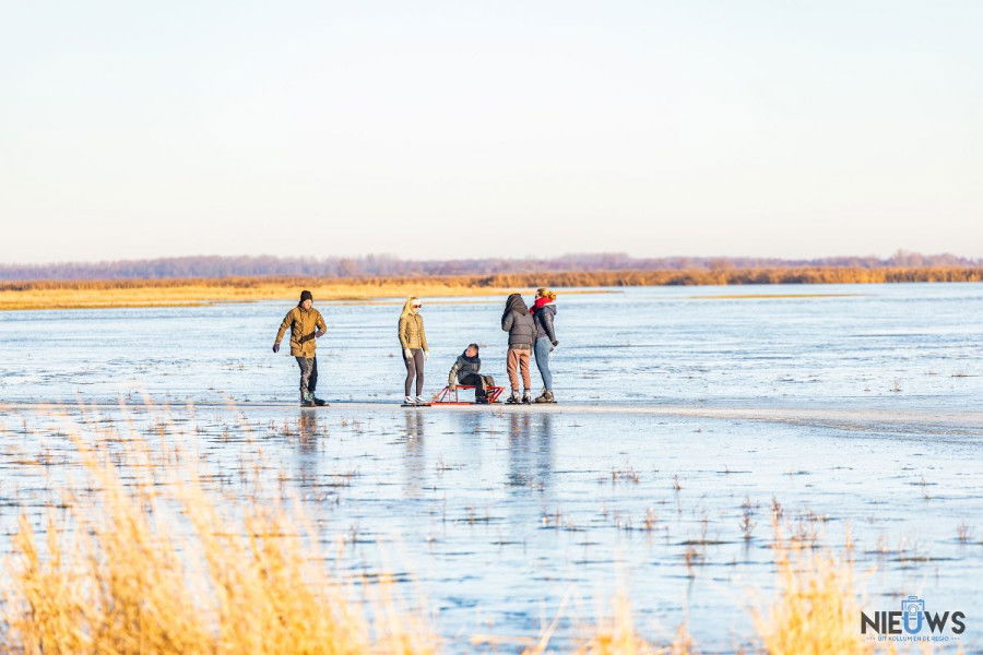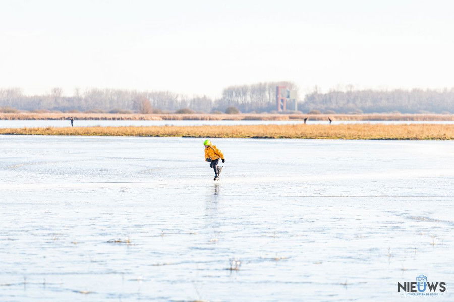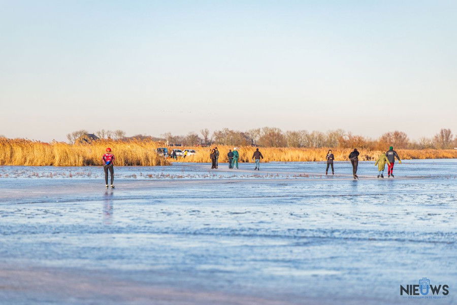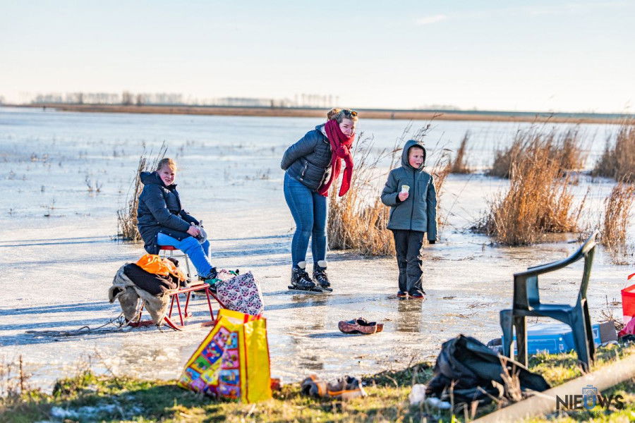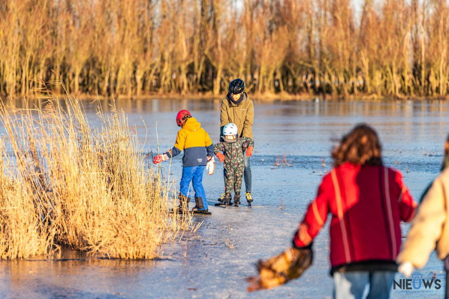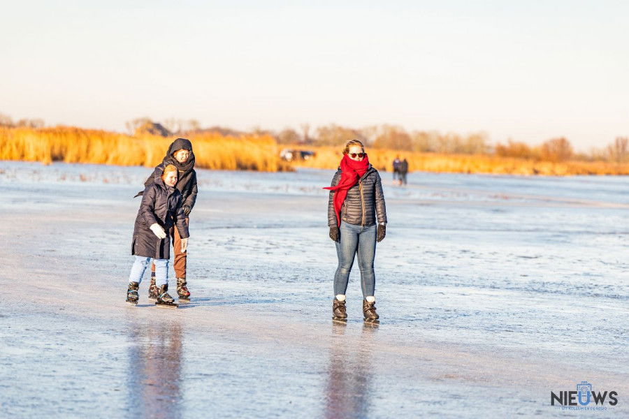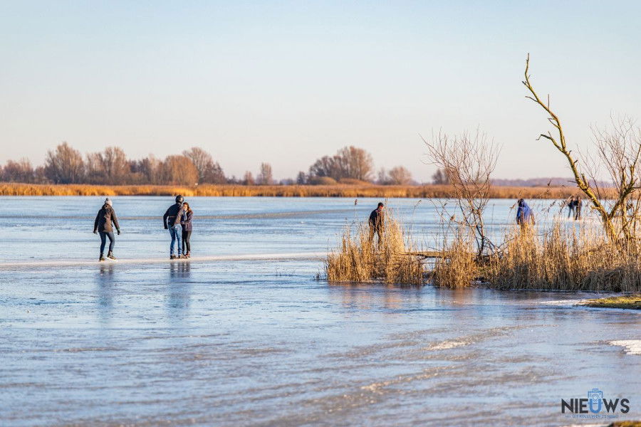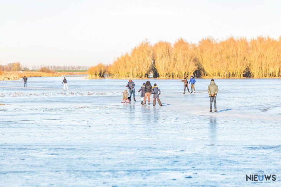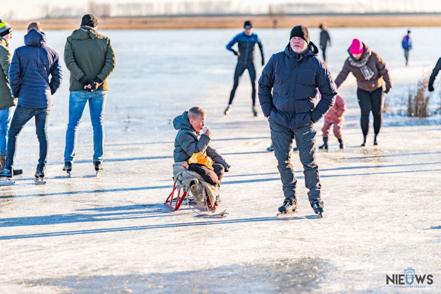 Toch lieten veel mensen zich daar niet door weerhouden en maakten zij een rondje door het natuurgebied. Jong en oud genoot van het zonnige winterweer. In de loop van de dag werd het steeds drukker op het ijs.