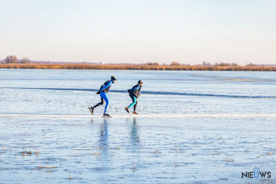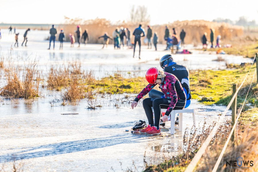 INGWIERRUM – Tientallen schaatsers stonden Tweede Kerstdag op het ijs bij Esumakeech. Het ijs was op sommige plekken nog niet overal volledig dichtgevroren en op enkele plaatsen stroomde het water nog.