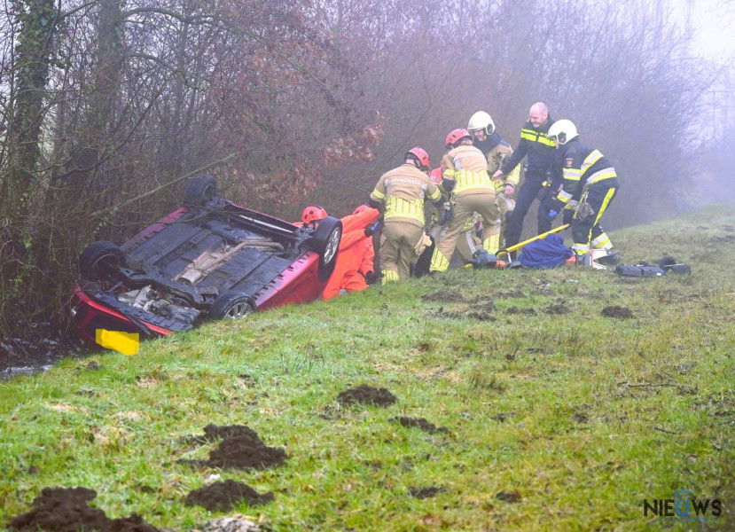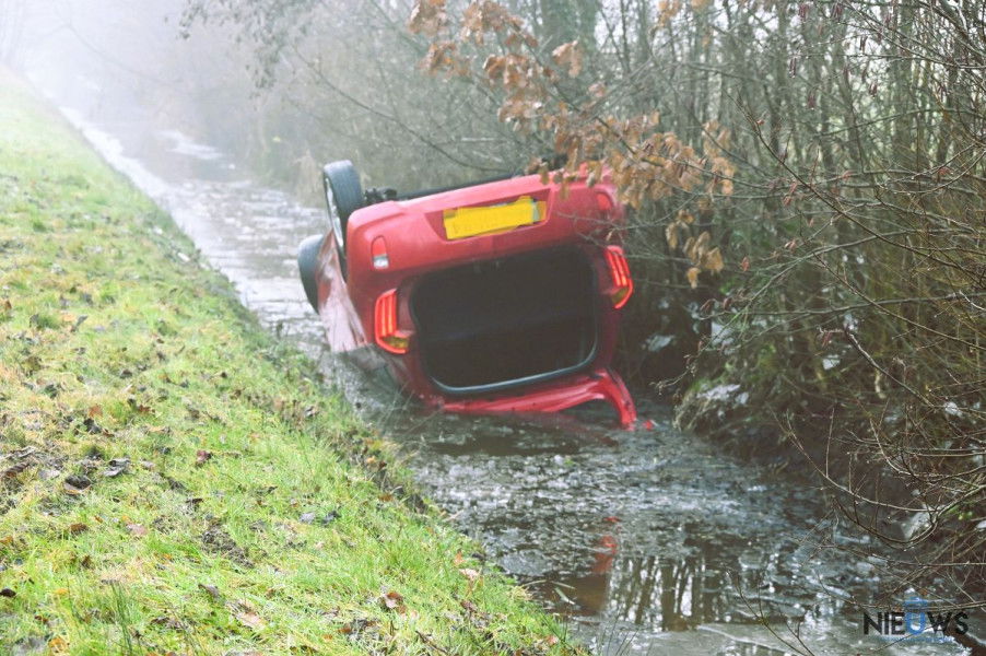 Vrouw belandt met auto op de kop in de sloot