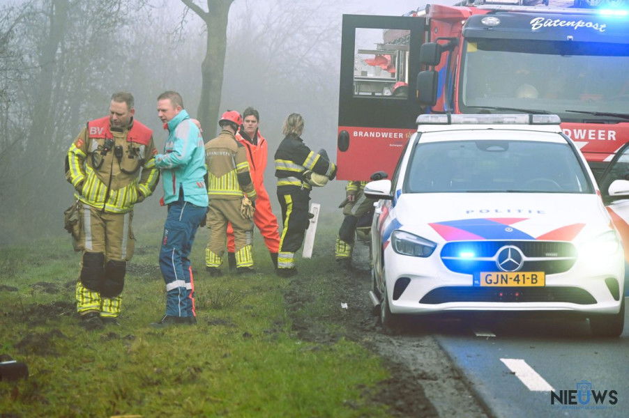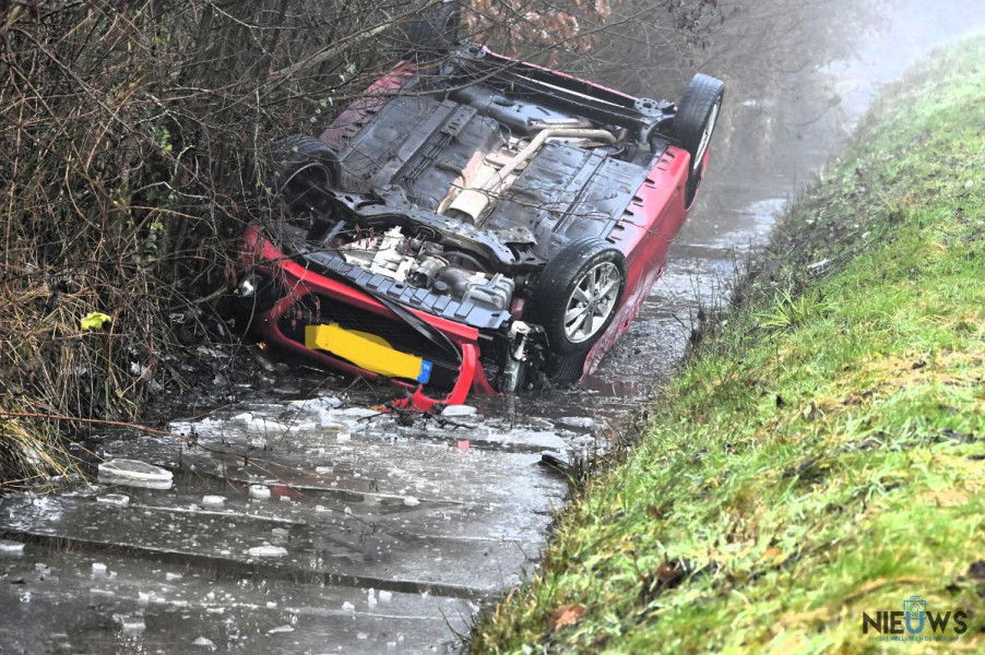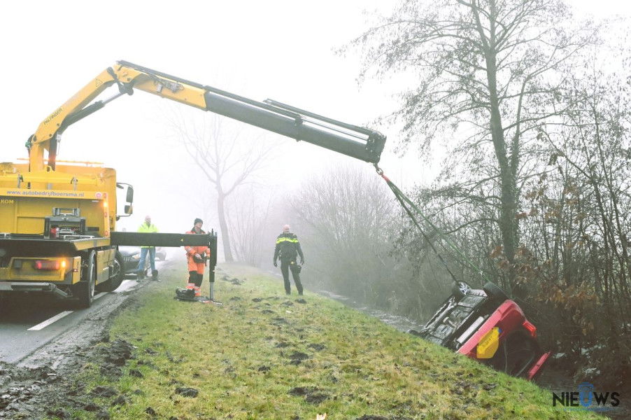BUITENPOST – Een vrouw is zaterdagochtend met haar auto op de kop in een sloot beland langs de Lauwersmeerweg (N358) bij Buitenpost. Ze kwam met de schrik vrij bij het ongeval.