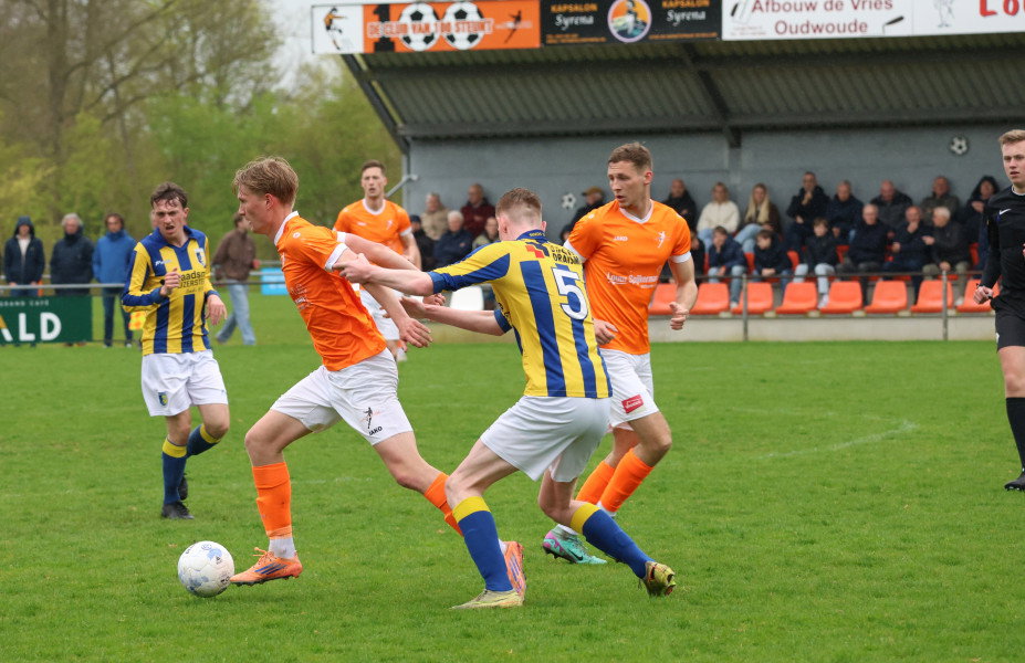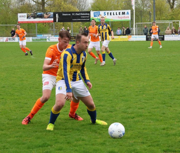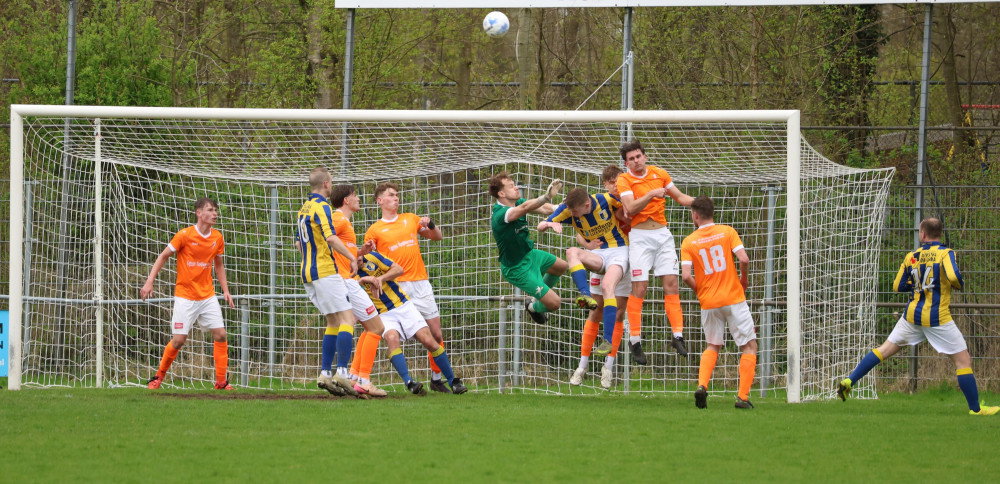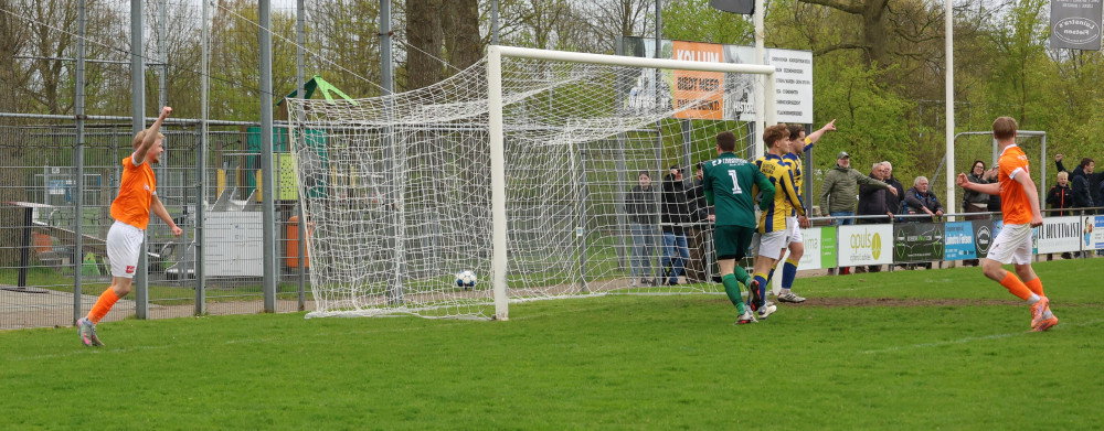 Voorlopig is het dus even oranje boven en dat zal burgemeester Kramer goed doen. Want wat wil je nog meer met de komst van de Koninklijke familie naar onze gemeente. Wat daarna gebeurt zien we dan wel weer. Met nog 5 wedstrijden te gaan is er nog van alles mogelijk want in deze competitie kan iedereen van iedereen winnen en kunnen we zeker nog een aantal verrassende uitslagen tegemoet zien.