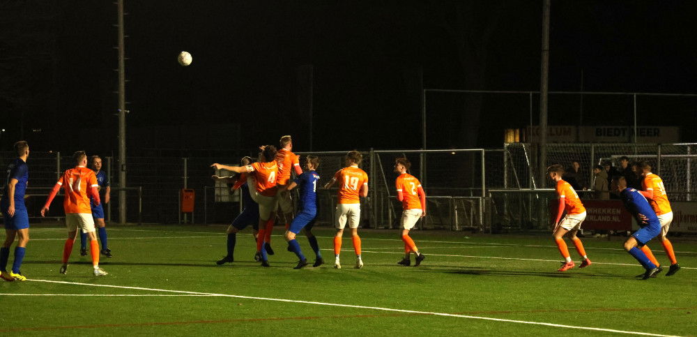 KOLLUM – Op dinsdagavond 3 maart moest de eerder wegens weersomstandigheden afgelaste wedstrijd vv Kollum – sc Twijzel worden ingehaald. Jammer dat deze derby niet op een zaterdagmiddag kon worden gespeeld, maar het was niet anders. Bij zowel vv Kollum als sc Twijzel waren de nodige spelers afwezig wegens vakantie, werk, schorsingen of blessures dus vooraf was moeilijk te voorspellen hoe de wedstrijd zou verlopen.