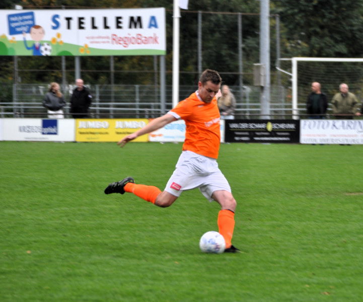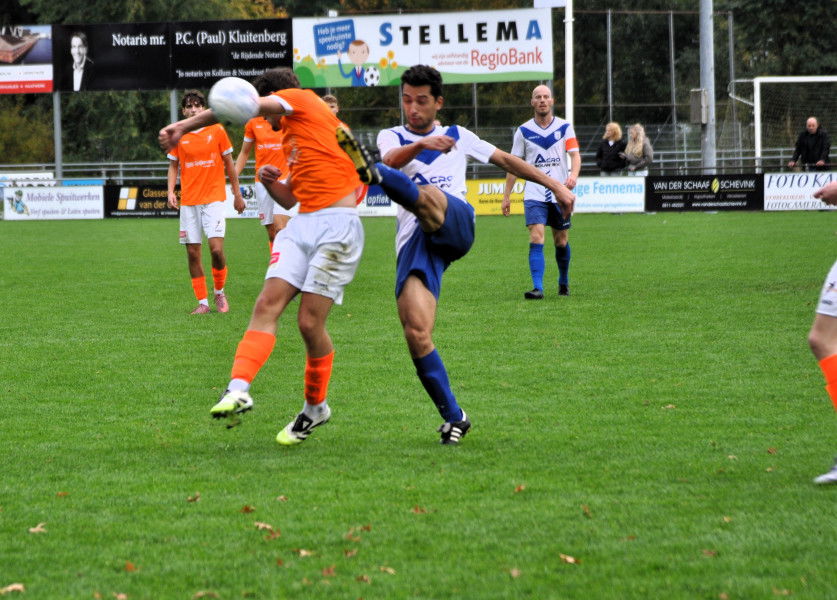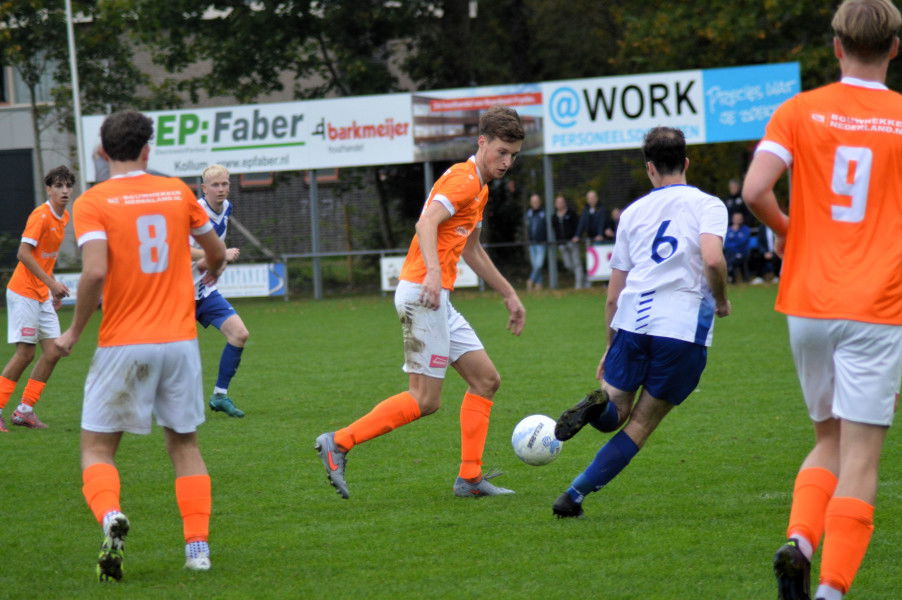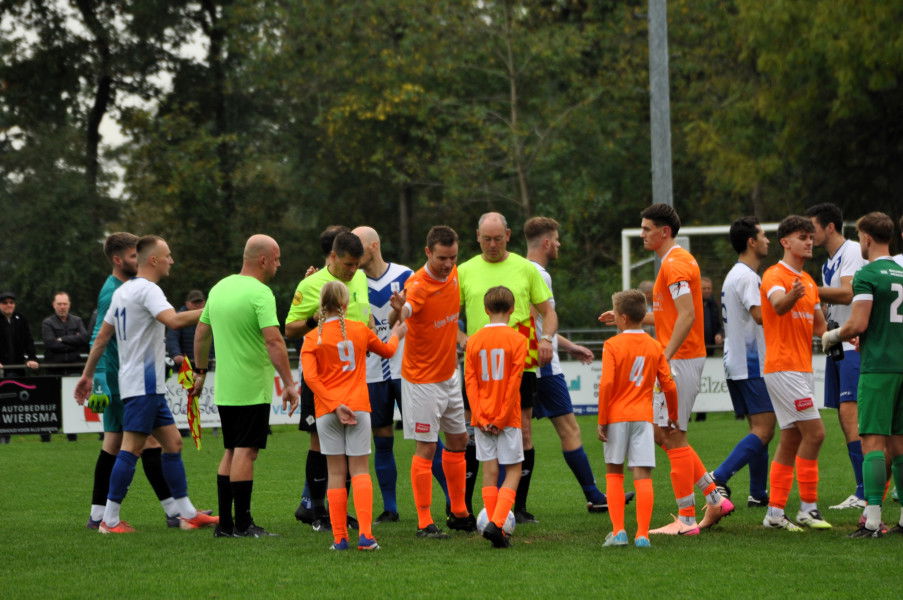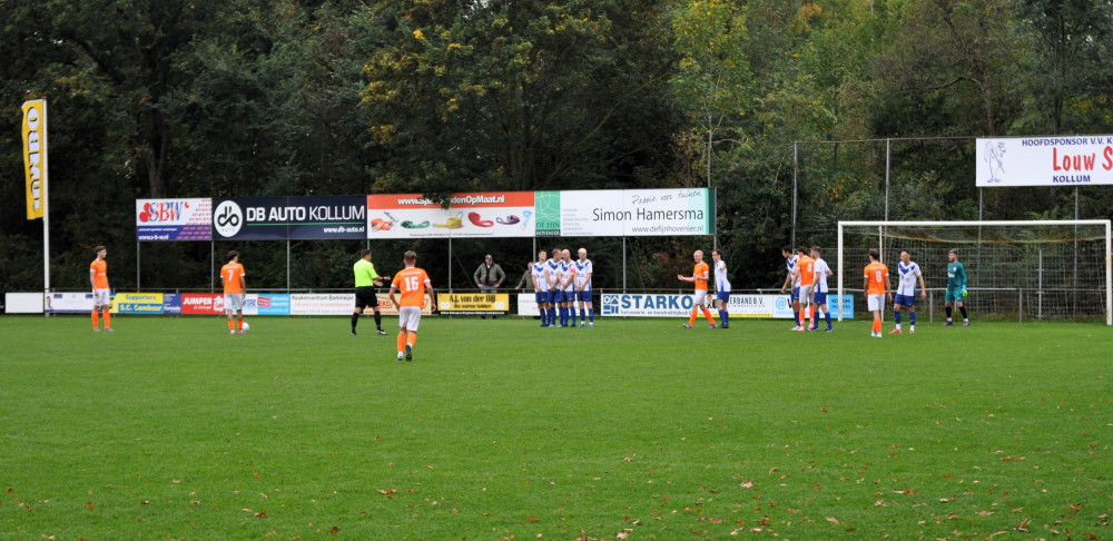 KOLLUM – Op zaterdag 11 oktober speelden 2 ploegen die tot nu toe in de competitie goed voetbal lieten zien tegen elkaar op sportpark Baensein. Er was vv Kollum alles aan gelegen om hun gedeelde koppositie te behouden. Voor vv Rijperkerk was het belangrijk om de aansluiting met de top van de competitie te houden. Scheidrechter Wiersema kreeg voorafgaand aan de wedstrijd in het kader van de week van de scheidsrechter een kleine attentie van Johan Schat. Vervolgens mochten de spelers van de week Doutzen Postma, Hidde Jacobs en Wisse Jongejan de wedstrijd in gang zetten. Goed overspelend passeerden ze de verdediging van Rijperkerk en scoorden ze de 1e goal van de middag.