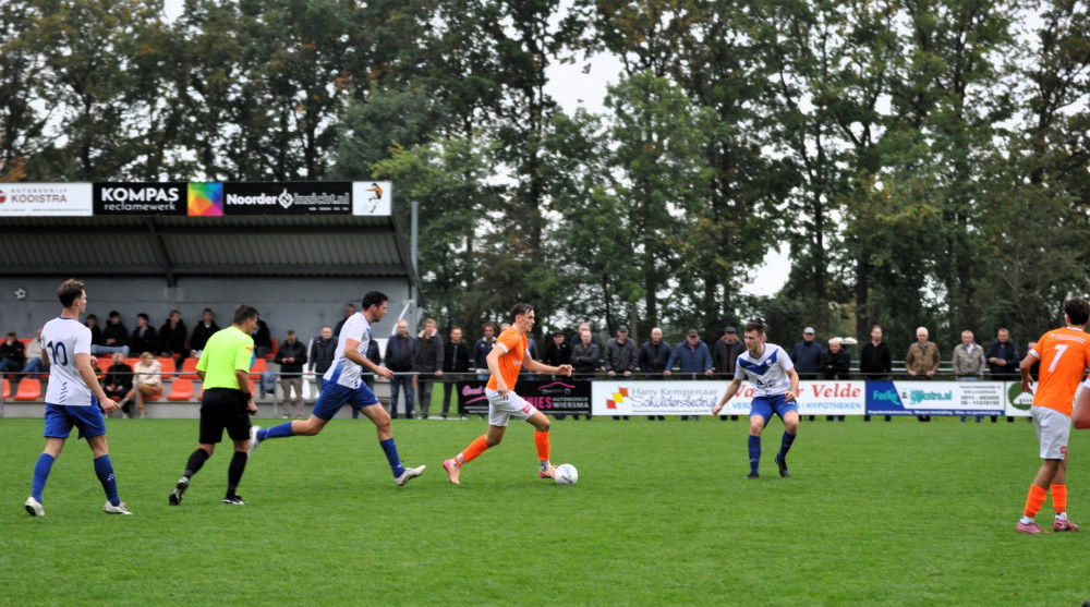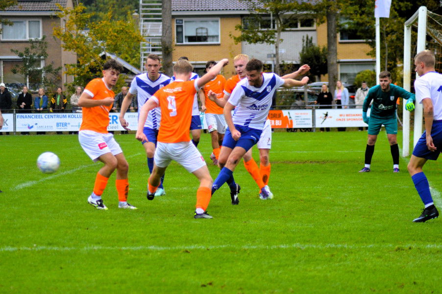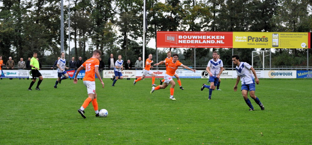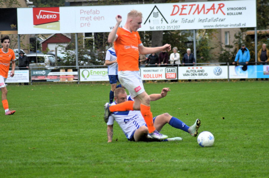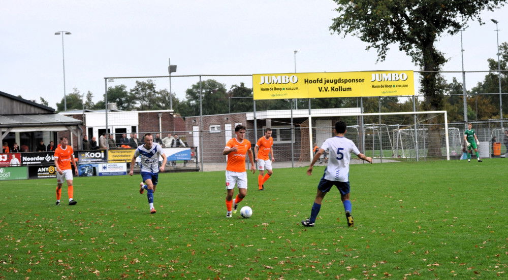 Vv Kollum moest dus in de tweede helft uit een ander vaatje tappen om de 3 punten thuis te houden. Vanaf het fluitsignaal tonen ze veerkracht en zetten ze Rijperkerk onder druk. Er wordt hard gewerkt en gevochten voor de overwinning. In de 63e minuut schoot Thieme Brandsma de frustratie van de eerste helft van zich af door na een fraaie combinatie de bal kiezelhard achter keeper Jorna van Rijperkerk te knallen. Maar de Kollumers namen geen genoegen met de 2-2. En nu was het Rijperkerk die de kluts kwijt was en achteruit moest. Het intensieve spel kostte beide ploegen veel energie, dus er werd volop gewisseld. Maar in de 88e minuut was het weer Thieme Brandsma die de trekker overhaalde na een mooie aanval van vv Kollum. Zo beloonde hij zijn ploeg voor het harde werken en de prima wedstrijdmentaliteit. De Kollumers blijven door deze overwinning gedeeld koploper met vv Oosterwolde. De eerstvolgende competitiewedstrijd is op 25 oktober 2025 om 15.00 uur in en tegen Zuidhorn.